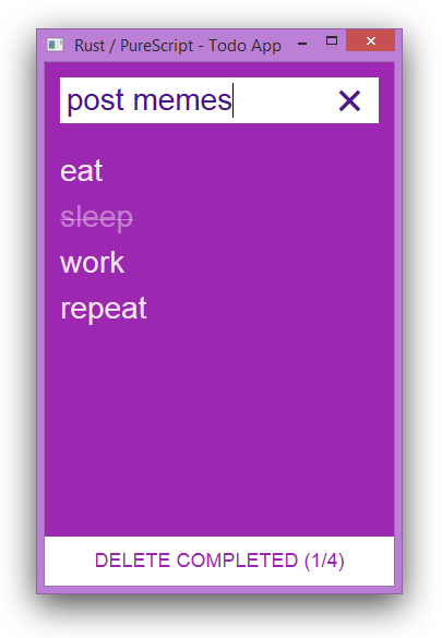- If you like type safety, write your frontend in Elm or PureScript*, or use a Rust frontend framework that compiles to asm.js, like yew.