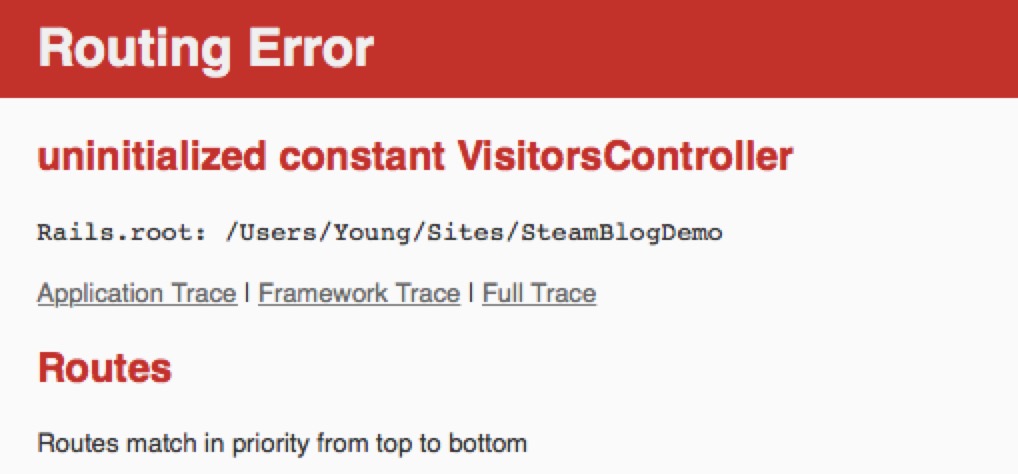。 遇到报错,提示没有初始化的常量 VisitorsController