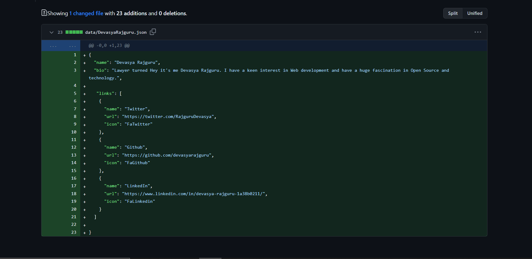 Please rename your filename to your github username data/devasyarajguru.json