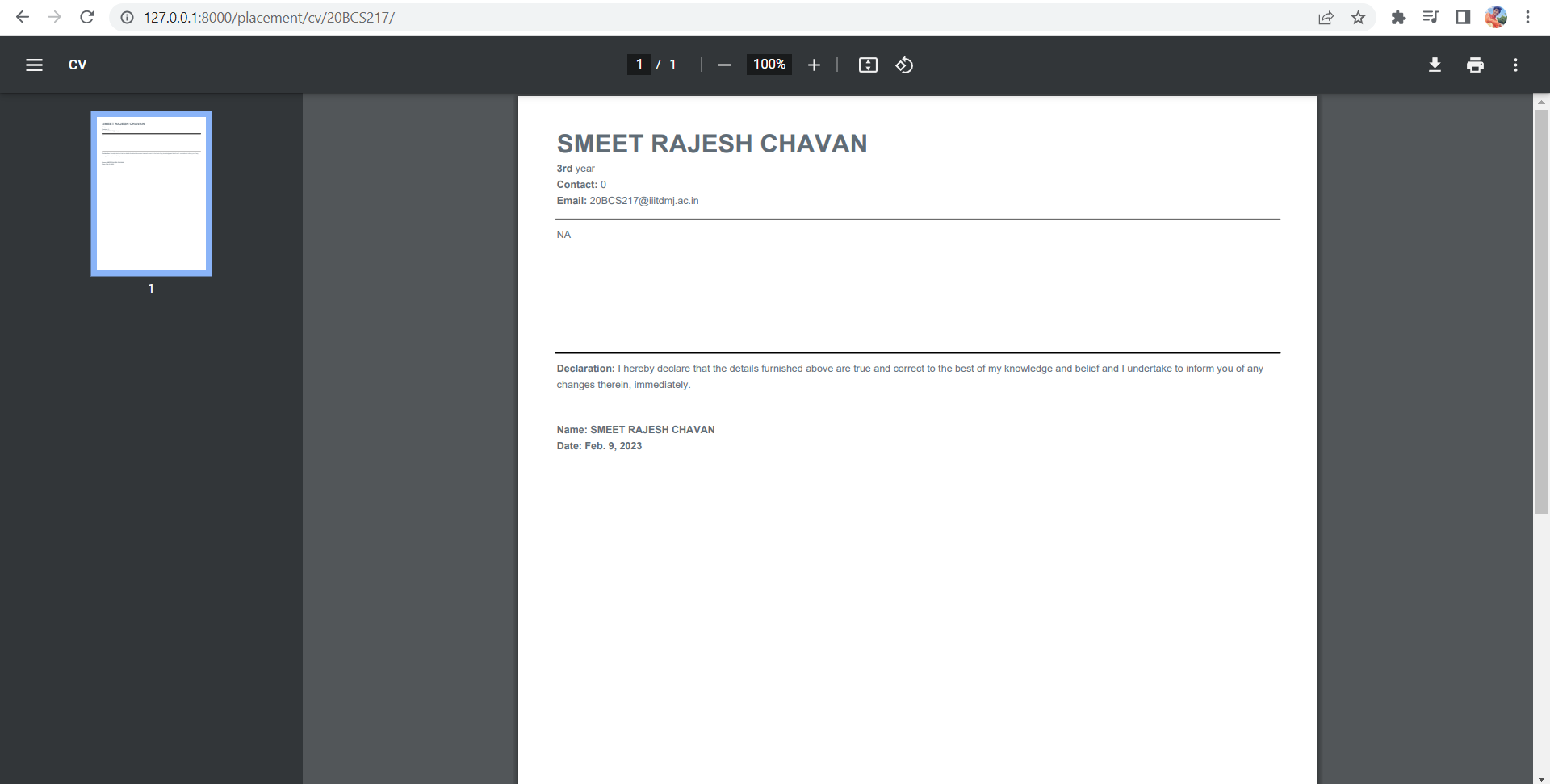 * sa-4 : 4 : all-changes-till-now (#1115) Co-authored-by: Smeet Chavan <[email protected]> * PlacementModuleWeb (#1322) * urls * added apply for jobs and upload documents * added options for TPO and Chairman * PLacement Schedule method * Added PLacement Statistics * Features added resume,update placement data ,notiication , add schedule * fixed ui issue placement.html * send invitation, check invitaion status ,resolved other minor bugs * Placement cell updated dashboard (#1402) * urls * added apply for jobs and upload documents * added options for TPO and Chairman * PLacement Schedule method * Added PLacement Statistics * Features added resume,update placement data ,notiication , add schedule * fixed ui issue placement.html * send invitation, check invitaion status ,resolved other minor bugs * Added pylint (#1302) * Create bandit_security_test.yml Added Bandit security test for python * Update bandit_security_test.yml * Update bandit_security_test.yml * Create pylint.yml * Update pylint.yml * Update pylint.yml * Revert "Added pylint (#1302)" (#1324) This reverts commit c1359b7. * pull * update * invitation status * invitation status --------- Co-authored-by: Hardik Sharma <[email protected]> Co-authored-by: Raman Chaudhary <[email protected]> * Placementcell (#1411) * urls * added apply for jobs and upload documents * added options for TPO and Chairman * PLacement Schedule method * Added PLacement Statistics * Features added resume,update placement data ,notiication , add schedule * fixed ui issue placement.html * send invitation, check invitaion status ,resolved other minor bugs * Added pylint (#1302) * Create bandit_security_test.yml Added Bandit security test for python * Update bandit_security_test.yml * Update bandit_security_test.yml * Create pylint.yml * Update pylint.yml * Update pylint.yml * Revert "Added pylint (#1302)" (#1324) This reverts commit c1359b7. * pull * update * invitation status * invitation status * placement cell --------- Co-authored-by: Hardik Sharma <[email protected]> Co-authored-by: Raman Chaudhary <[email protected]> * resolved dashboard profile view --------- Co-authored-by: Smeetiiitdmj <[email protected]> Co-authored-by: Smeet Chavan <[email protected]> Co-authored-by: akshatnema <[email protected]> Co-authored-by: Kush Batla <[email protected]> Co-authored-by: Hardik Sharma <[email protected]> Co-authored-by: Raman Chaudhary <[email protected]>