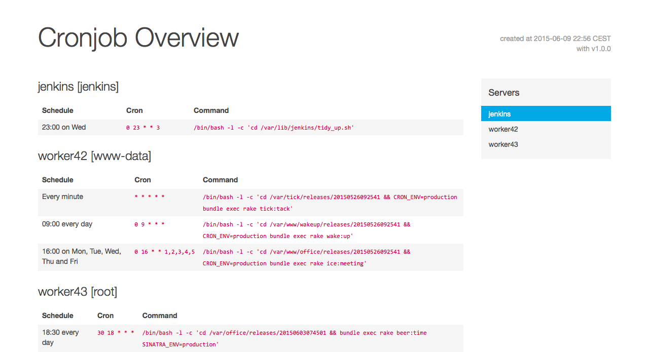 cron2html -o cronjobs.html server1 server2