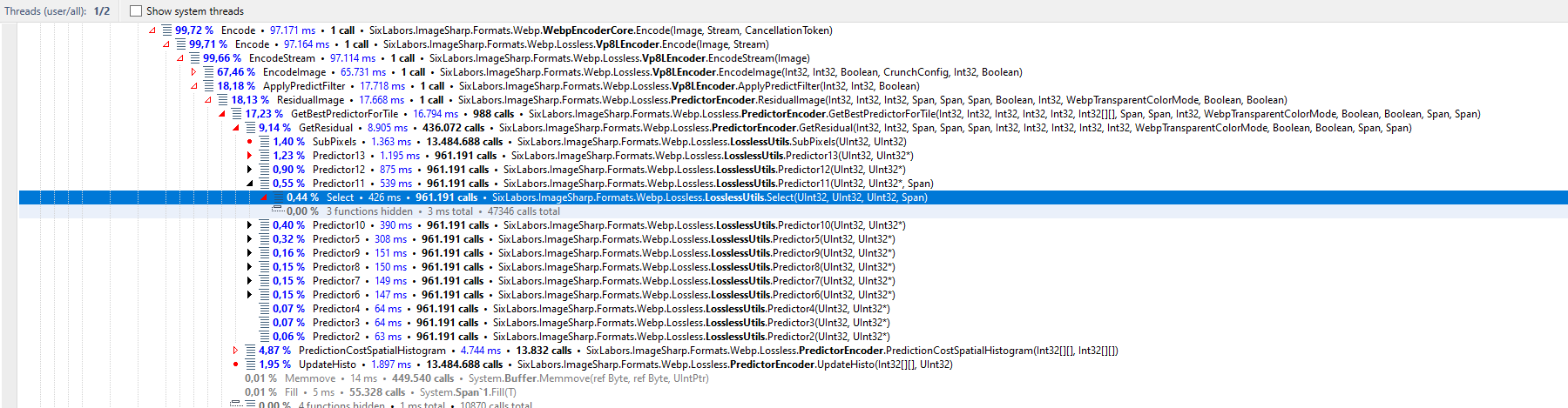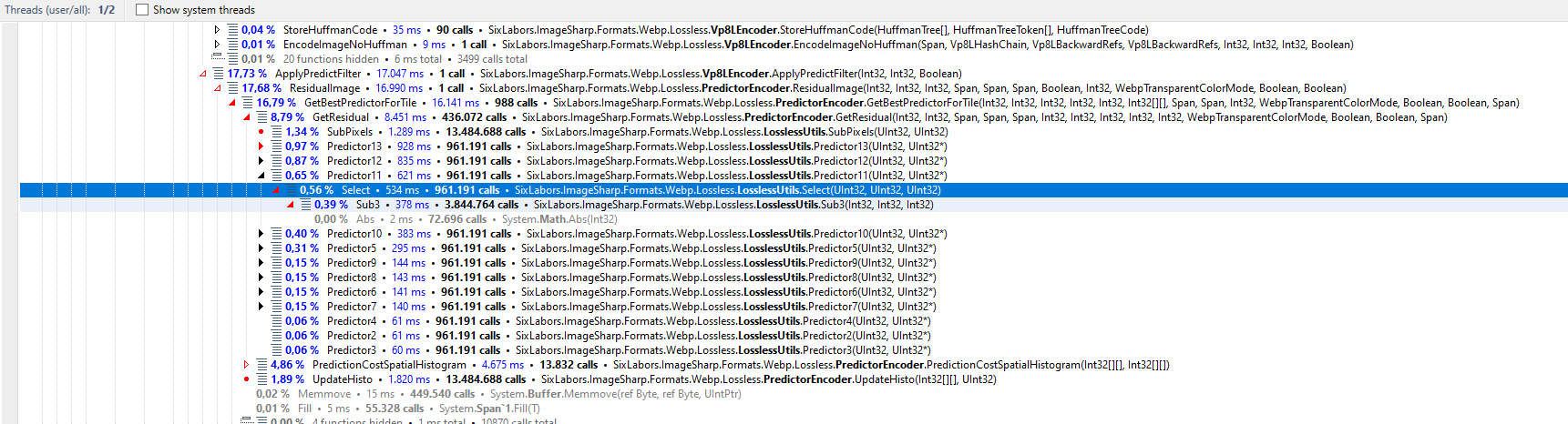 This adds a SSE2 version of the method Select(), which is used during lossless encoding. Its a bit faster, but its very specific to the image which is encoded, since this only gets used in