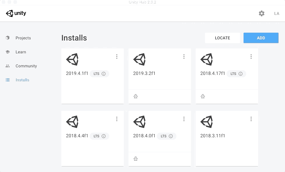 - Install Unity 2018.3 and later from Unity Hub. For this workshop, we recommend 2019.4.