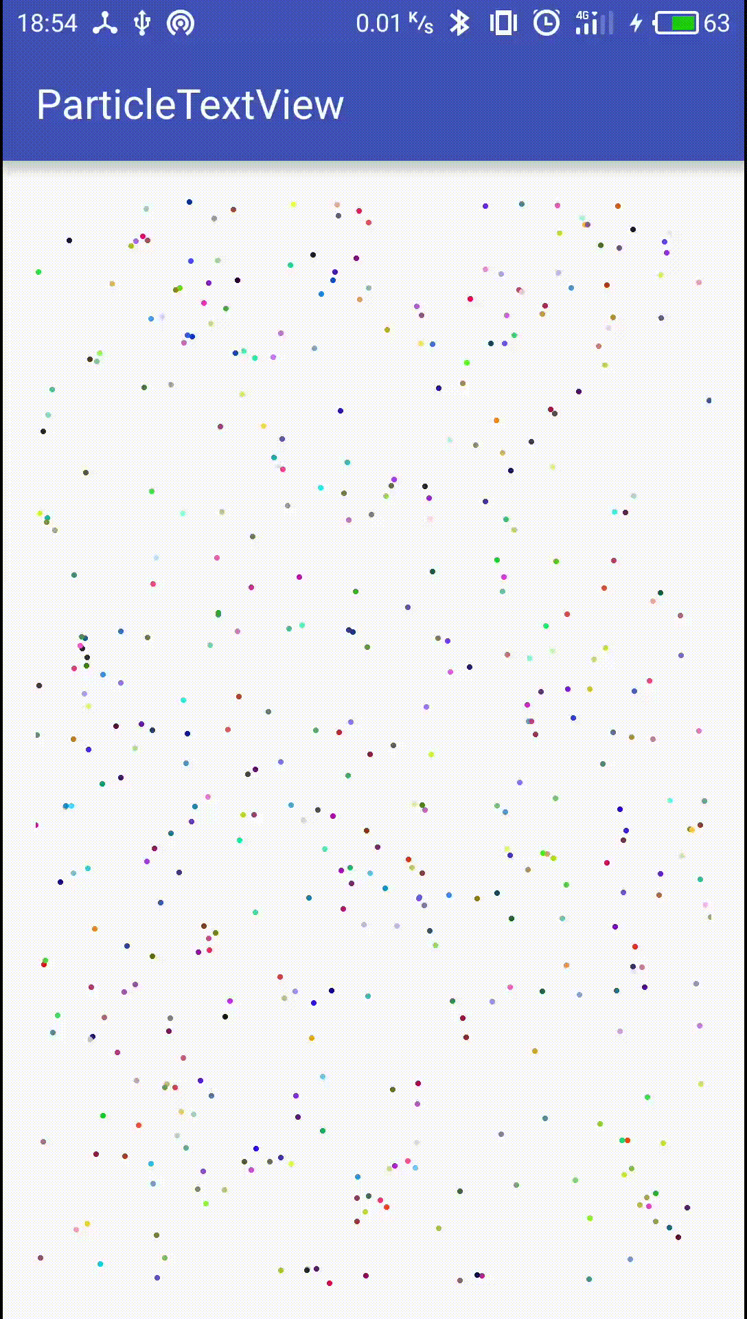 ParticleTextView 是一个 Android 平台的自定义 view 组件,可以用彩色粒子组成指定的文字,并配合多种动画效果和配置属性,呈现出丰富的视觉效果。