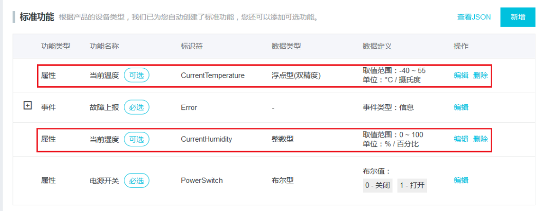 - 根据设备的功能定义,获取到物的模型(TSL),即一段json格式的描述信息。