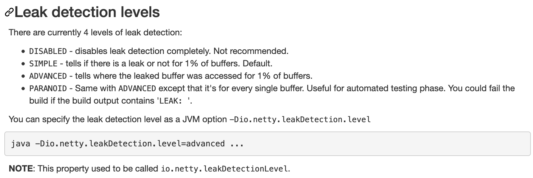 Hi @jojochuang , according to https://netty.io/wiki/reference-counted-objects.html , the option is renamed to |