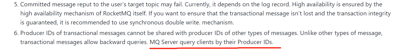 **BUG REPORT** 1. Please describe the issue you observed: I) : The **transaction states** in the document should be as consistent as possible with the states predefined in the code.  II): MQ Server may query clients by `producerGroup` of producers instead of `IDs`, the described here in this document should be corrected.  2. Please tell us about your environment: OS: Windows10 branch: develop