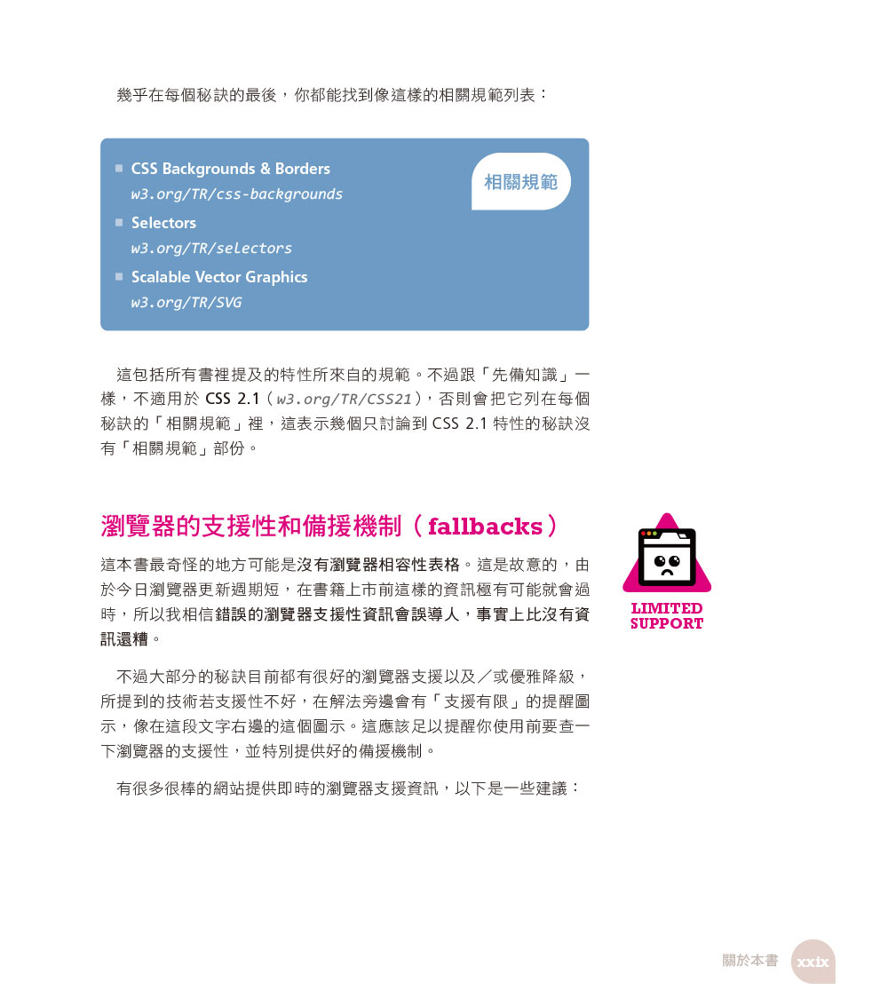## 基本信息 ![[CSS Secrets 繁体中文版 - 封面]](http://www.gotop.com.tw/Waweb2004/WawebImages/BookXL/A447.jpg) #### 《CSS Secrets 中文版:解决网页设计问题的有效秘诀》 - 作者:Lea Verou - 译者:郑巧玉 - 出版社:碁峰资讯股份有限公司 - 出版日期:2016-01-11 - ISBN:9789863478744 - 页数:392 - 价格:680 新台币(约合 133 元人民币) - 详细介绍:[《CSS Secrets》繁体中文版深度测评](http://mp.weixin.qq.com/s?__biz=MzIyMjE0ODQ0OQ==&mid=402491044&idx=1&sn=7f7873060c1331e9cf4477b095aa7226#rd) ## 内页预览 (所有预览图片由 [碁峰资讯股份有限公司](http://books.gotop.com.tw/o_A447) 提供。) ![[CSS Secrets 繁体中文版 - 预览]](http://www.gotop.com.tw/waweb2004/WawebImages/BookCom/A447/9789863478744_b1.jpg) --- ![[CSS Secrets 繁体中文版 - 预览]](http://www.gotop.com.tw/waweb2004/WawebImages/BookCom/A447/9789863478744_b2.jpg) --- ![[CSS Secrets 繁体中文版 - 预览]](http://www.gotop.com.tw/waweb2004/WawebImages/BookCom/A447/9789863478744_b3.jpg) --- ![[CSS Secrets 繁体中文版 - 预览]](http://www.gotop.com.tw/waweb2004/WawebImages/BookCom/A447/9789863478744_b4.jpg) --- ![[CSS Secrets 繁体中文版 - 预览]](http://www.gotop.com.tw/waweb2004/WawebImages/BookCom/A447/9789863478744_b5.jpg) --- ![[CSS Secrets 繁体中文版 - 预览]](http://www.gotop.com.tw/waweb2004/WawebImages/BookCom/A447/9789863478744_b6.jpg) --- ![[CSS Secrets 繁体中文版 - 预览]](http://www.gotop.com.tw/waweb2004/WawebImages/BookCom/A447/9789863478744_b7.jpg) --- ![[CSS Secrets 繁体中文版 - 预览]](http://www.gotop.com.tw/waweb2004/WawebImages/BookCom/A447/9789863478744_b8.jpg) --- ![[CSS Secrets 繁体中文版 - 预览]](http://www.gotop.com.tw/waweb2004/WawebImages/BookCom/A447/9789863478744_b9.jpg) --- ![[CSS Secrets 繁体中文版 - 预览]](http://www.gotop.com.tw/waweb2004/WawebImages/BookCom/A447/9789863478744_b10.jpg) --- ![[CSS Secrets 繁体中文版 - 预览]](http://www.gotop.com.tw/waweb2004/WawebImages/BookCom/A447/9789863478744_b11.jpg) --- ![[CSS Secrets 繁体中文版 - 预览]](http://www.gotop.com.tw/waweb2004/WawebImages/BookCom/A447/9789863478744_b12.jpg) --- ![[CSS Secrets 繁体中文版 - 预览]](http://www.gotop.com.tw/waweb2004/WawebImages/BookCom/A447/9789863478744_b13.jpg) --- (本文完)