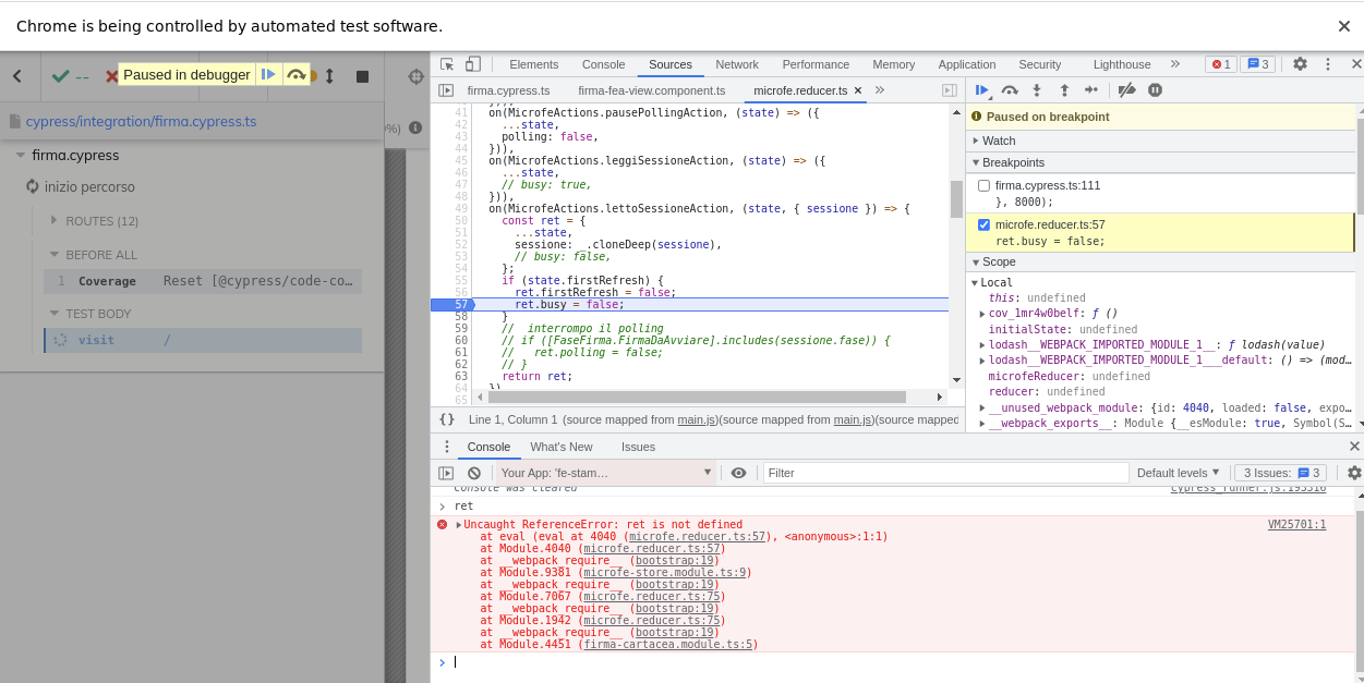 When running my app within Cypress, Chrome dev tools debugger shows inconsistent behaviour on the app code.