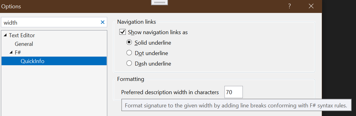 OK, I'm waaay out of the loop and I didn't notice VS now (finally) wraps tooltips approximately to the width of the editor. It does not make sense to fight that built-in behavior, the FCS width setting this PR exposes should work fine with it. I'll add a tooltip explaining what it does exactly. |