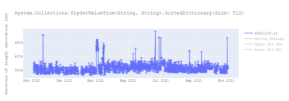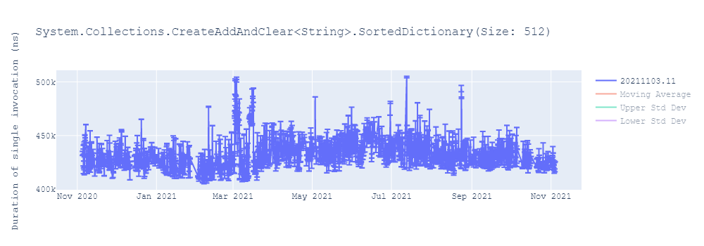SortedDictionary - Duration of single invocation | 427.04 μs | 476.78 μs | 1.12 | 0.08 | False | |||||