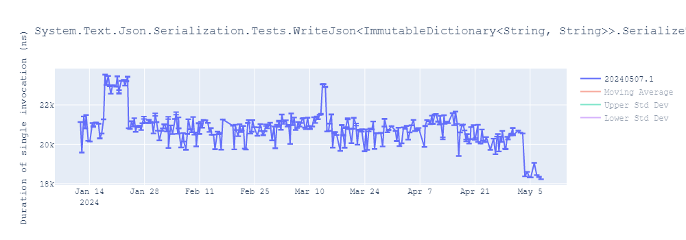 System.Text.Json.Serialization.Tests.WriteJson<ImmutableDictionary<String, String>>.SerializeToUtf8Bytes(Mode: Reflection)