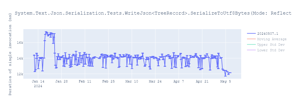 System.Text.Json.Serialization.Tests.WriteJson<TreeRecord>.SerializeToUtf8Bytes(Mode: Reflection)