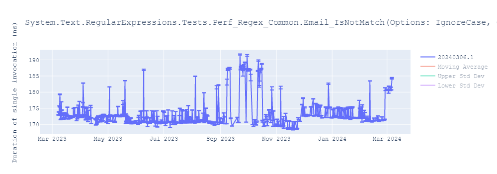 System.Text.RegularExpressions.Tests.Perf_Regex_Common.Email_IsNotMatch(Options: IgnoreCase, Compiled)