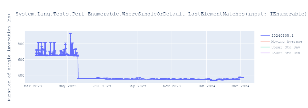 System.Linq.Tests.Perf_Enumerable.WhereSingle_LastElementMatches(input: IEnumerable)