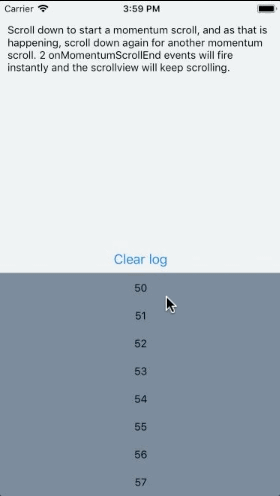 is fired and the scrollview starts scrolling. - When it finally stops, an