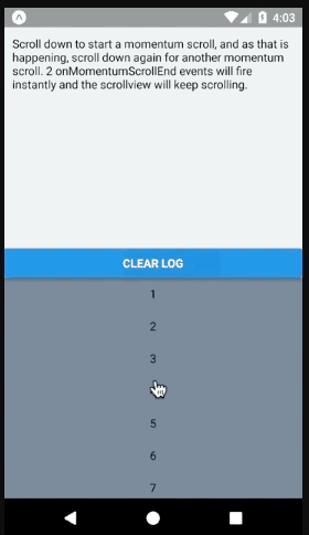The momentum scroll on Android are firing before the momentum actually ends. Contrary to iOS, which behaves as it should.
