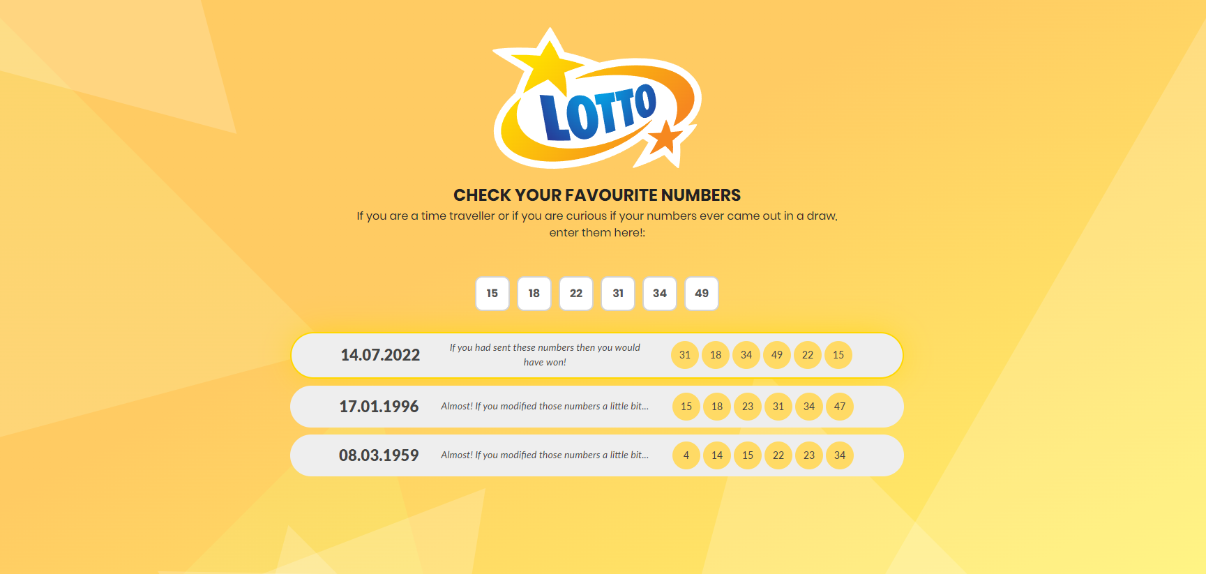 On the site you can check if your lucky numbers have ever appeared in any lotto draw since 1957!