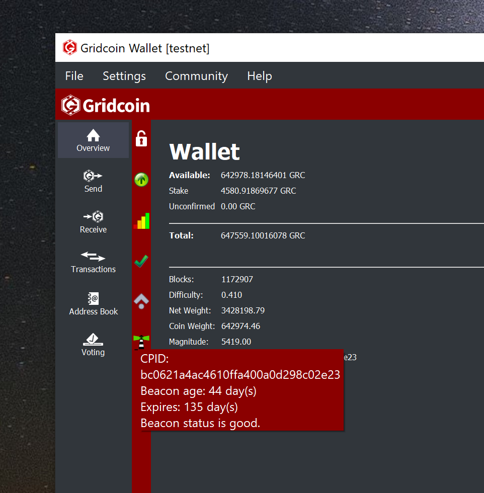 You know i've got an RPC client that i'm polling to check the wallet is staking; would be good to be able to inform the beacon's up too. I didn't see any way to verify beacon status from available RPC responses; educate me if there is a way, and perhaps the wallet staking status would already reflect the beacon being down but it would be helpful to be able to forewarn impending beacon expiry.