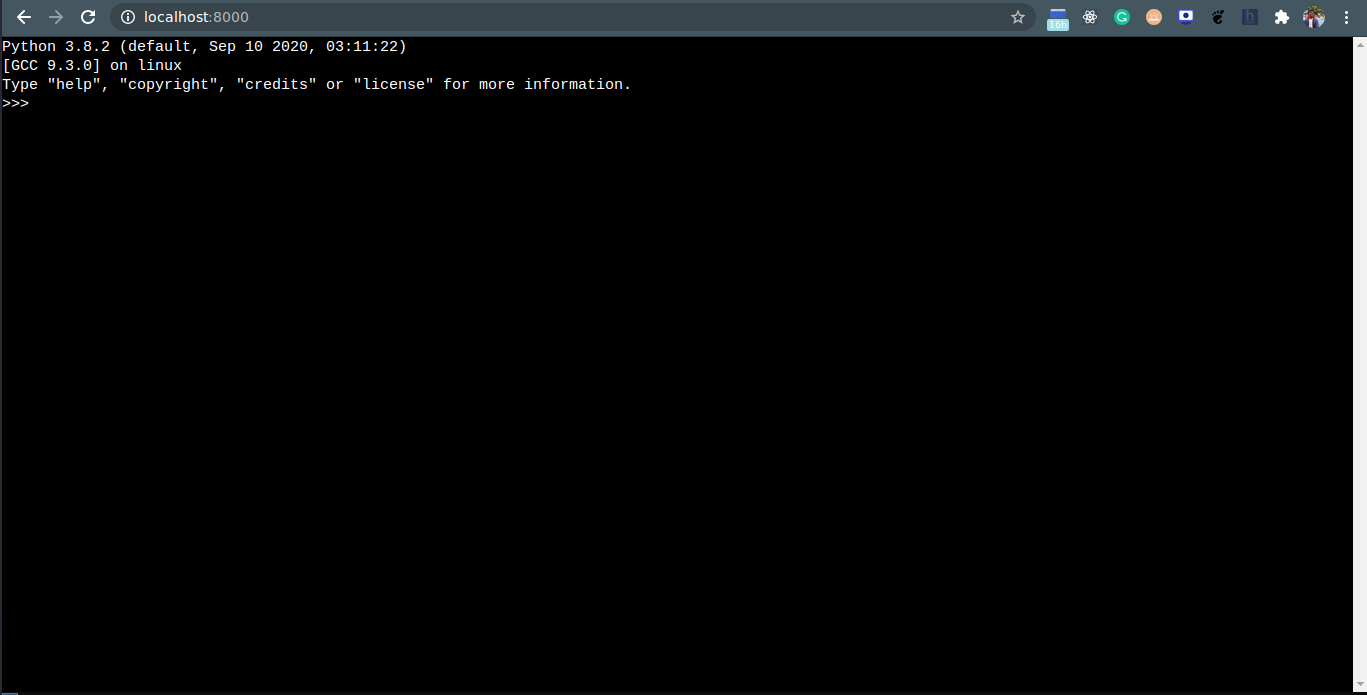 This creates a tornado server which will be serving your bash shell on http://localhost:8000/