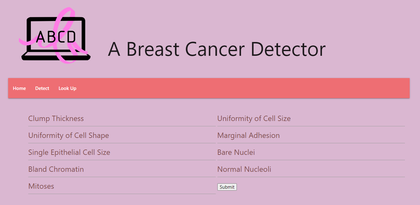 About 1 in 8 U.S. women (about 12%) will develop invasive breast cancer over the course of her lifetime. To ensure that everyone receives their deserved treatment, early detection is vital. Using machine learning, we have developed a program that detects whether a tumor is malignant or benign (given a certain set of characteristics). Both doctors and patients can use this application to improve their chances of detecting breast cancer.