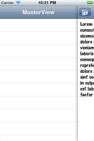 When you slide your finger right, a master view will be presented. If you slide it left it will go away.