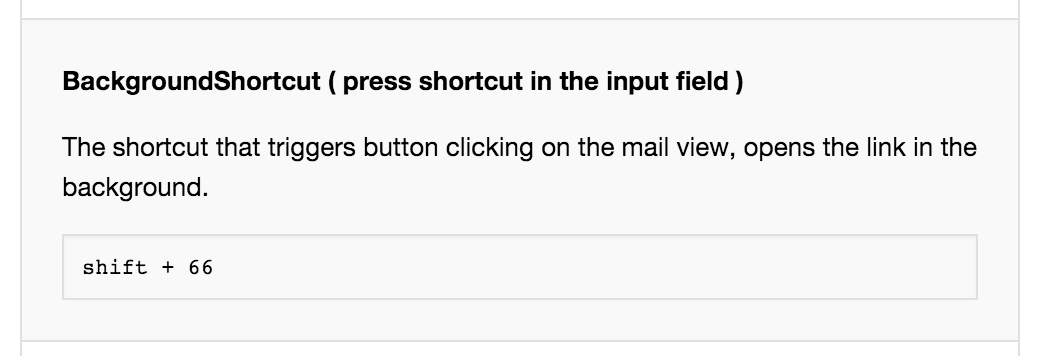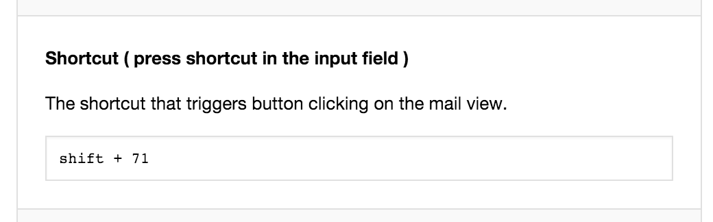 (currently non-customizable). It will trigger one the action button when an email is selected using key navigation (when the blue bar appears):