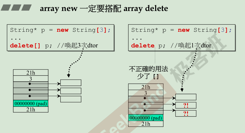 下面这张图说明了为何删除数组对象需要使用delete[]方法: