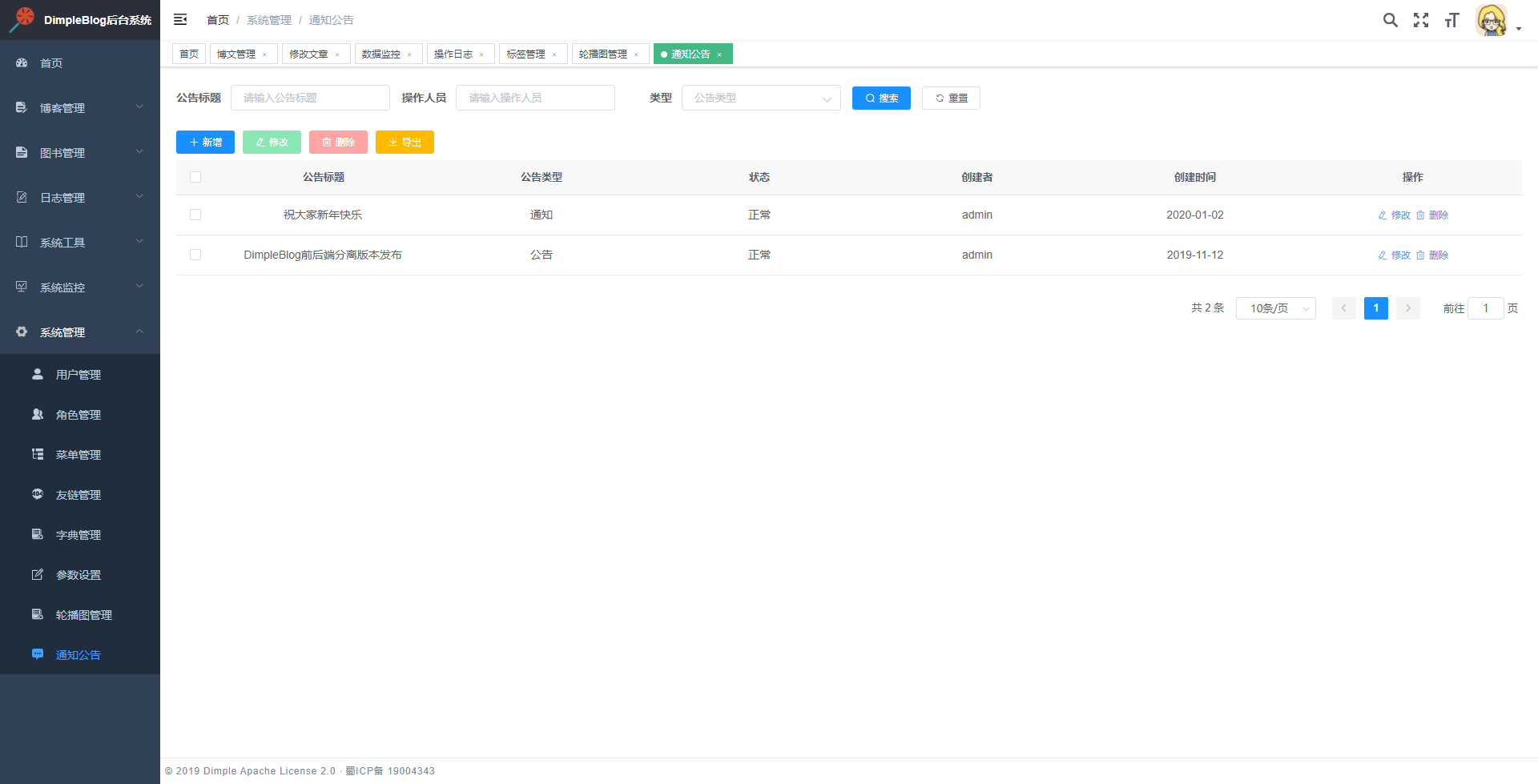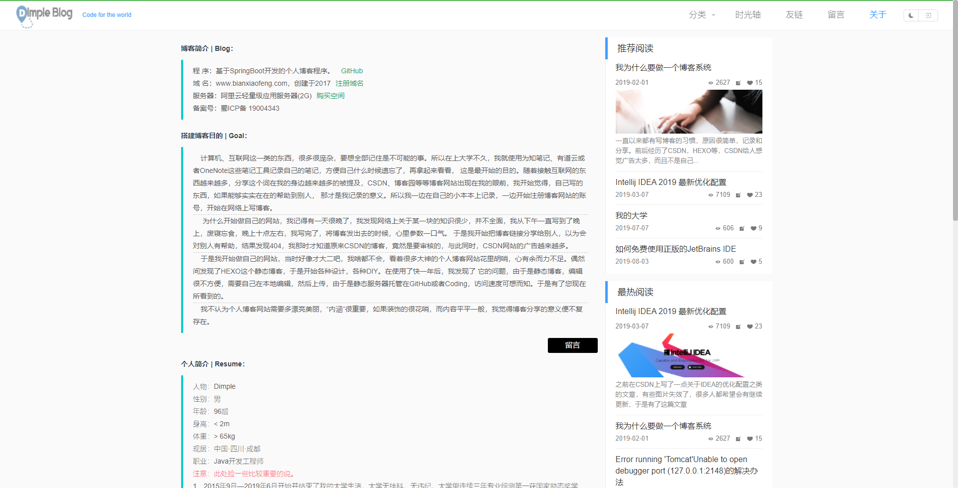 是基于SpringBoot2搭建的个人博客系统.