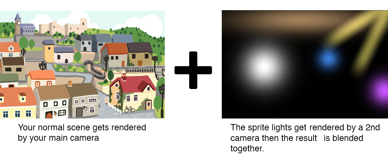 SpriteLightKit brings back the old two buffered blend trick to get pseudo lighting with just sprites. It handles the setup process of getting that second buffer blended with your normal scene.