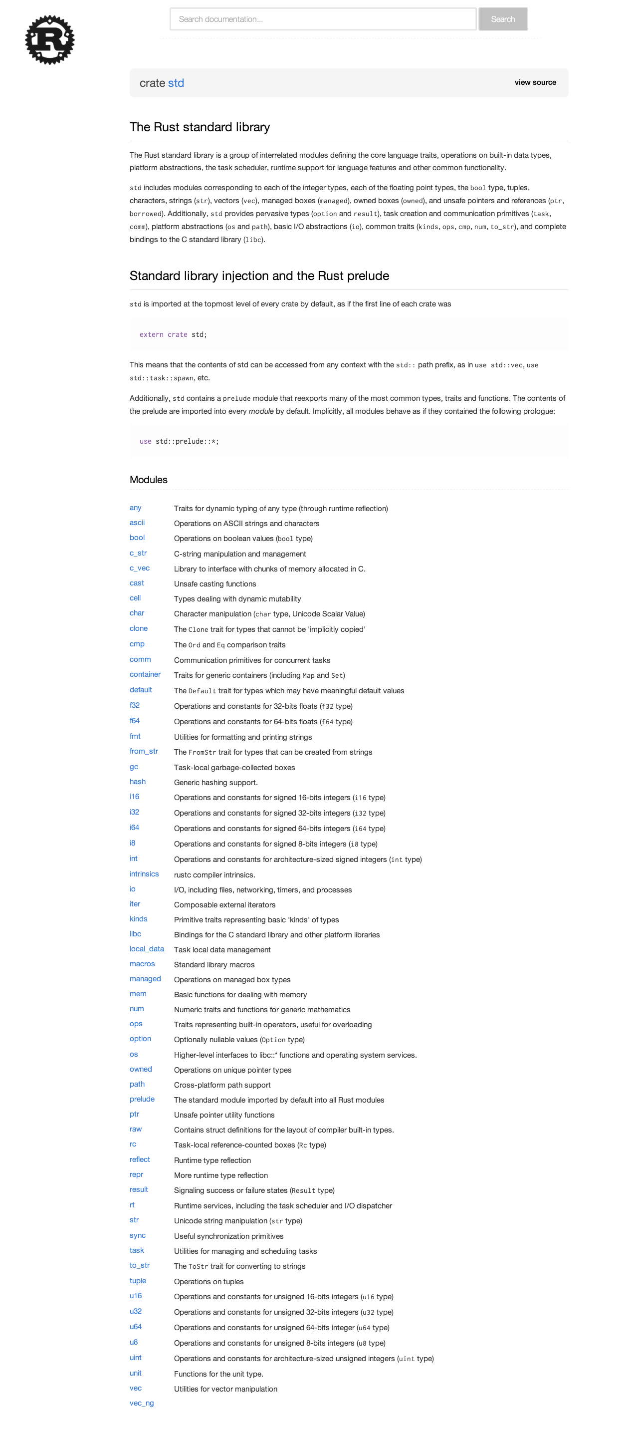 Fixed some issues, making the overall design a little bit more responsive. (480px width, minimally useable size) Demo: http://titan-rust.s3-website-us-east-1.amazonaws.com/doc/std/index.html /cc @huonw @adrientetar Also, I removed the search button because it doesn't do anything (from what I can tell), so it's quite useless. |