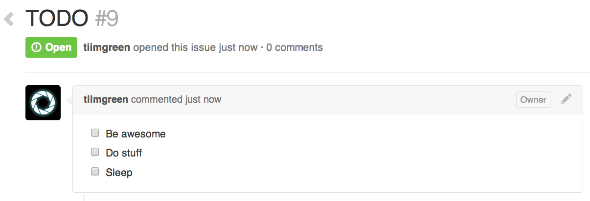 In Issues and Pull requests check boxes can be added with the following syntax (notice the space):