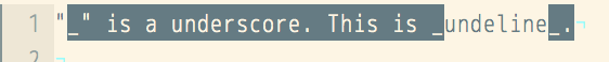``` "_" is a underscore. This is _undeline_. ``` **Result**: "_" is a underscore. This is _undeline_. But with vim-markdown: