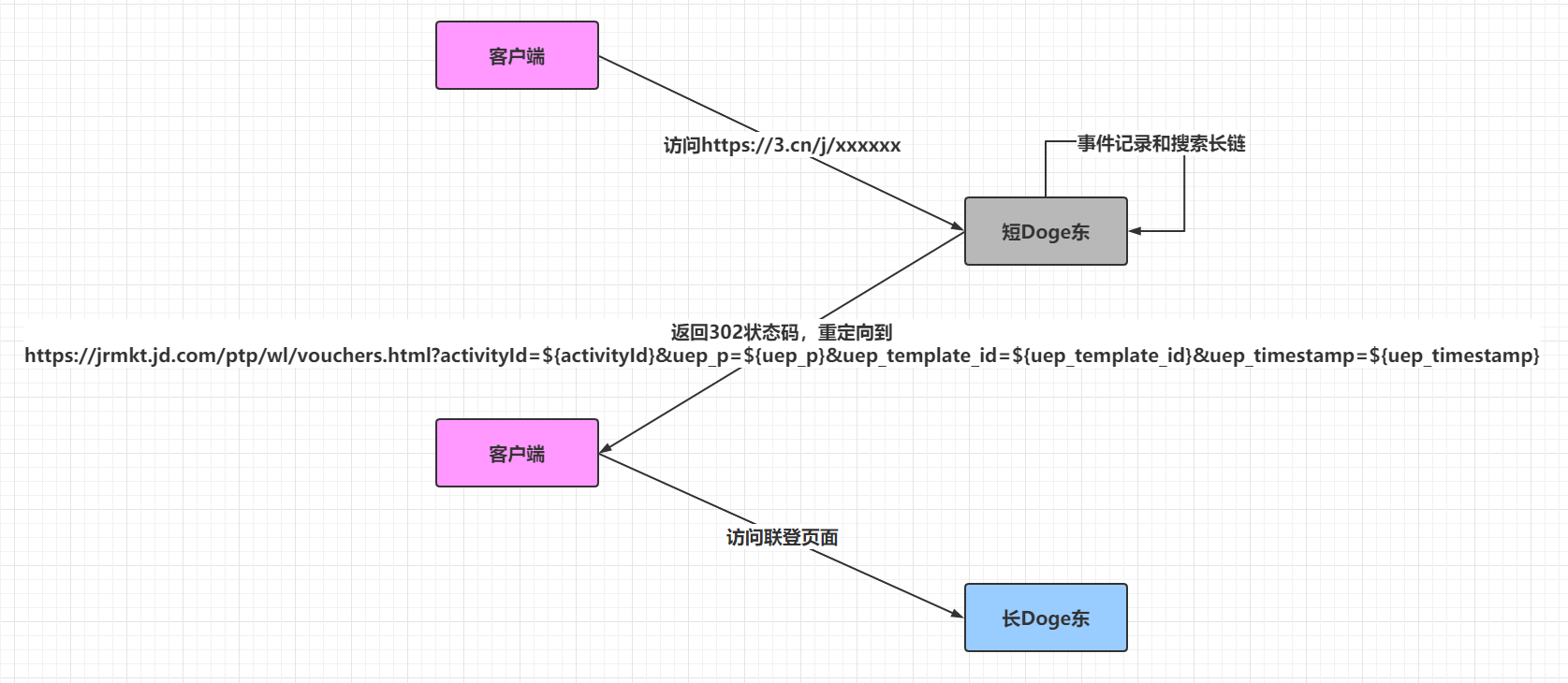 ,把它拷贝到浏览器中打开,发现客户端会重定向到长链https://jrmkt.jd.com/ptp/wl/vouchers.html?activityId=${activityId}&uep_p=${uep_p}&uep_template_id=${uep_template_id}&uep_timestamp=${uep_timestamp}