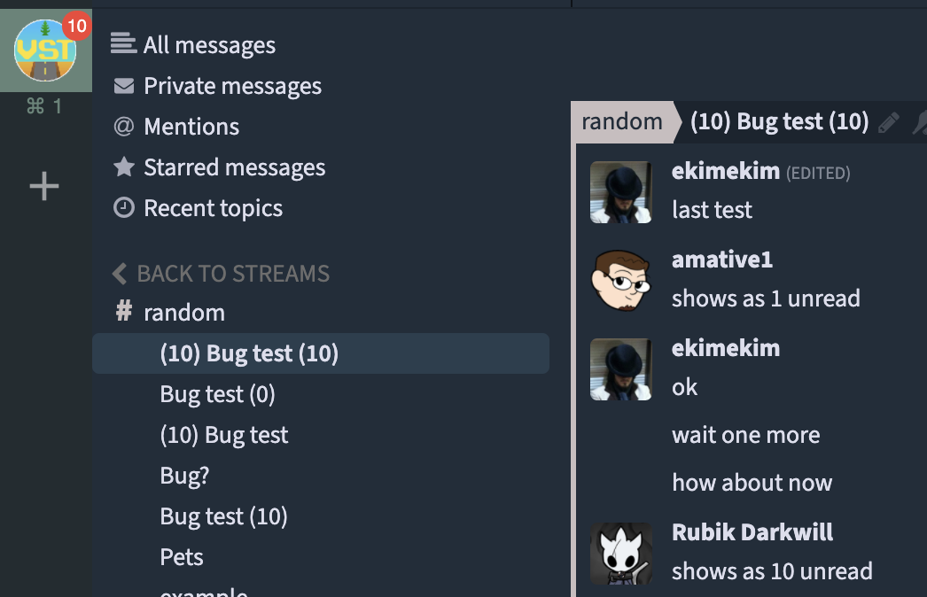 Create a thread with (10) in the topic title, server icon and app icon display 10 unread messages (even if less than 10 messages exist on the server